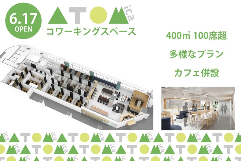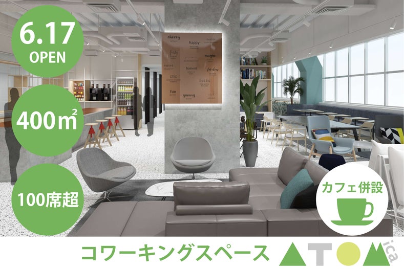 2019年6月17日、ボンベルタ橘8階に400㎡100席超のコワーキングスペース"ATOMica"と50席のパブリックカフェをオープン致します。