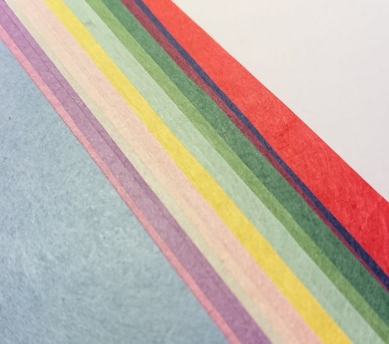 また、いろいろな花や葉を作り出すことで、紙色の鮮やかさや、豊富さを生かしています。日本の伝統色をはじめ、特に緑色系の紙色の豊富さは、出雲民藝紙の自慢であり、私も作品を作るうえでとてもウキウキするところです。
