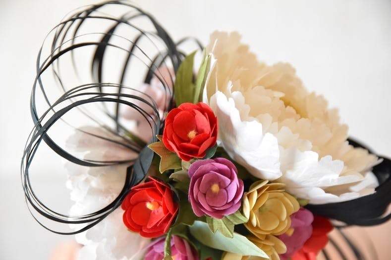花びらや葉を一枚ずつ切り出し、一輪の花として組み上げる作業を全て手作業でおこなうことで、より手漉き和紙の持つ温かみを引き出し、手作りの温もりを伝えるものとなっています。