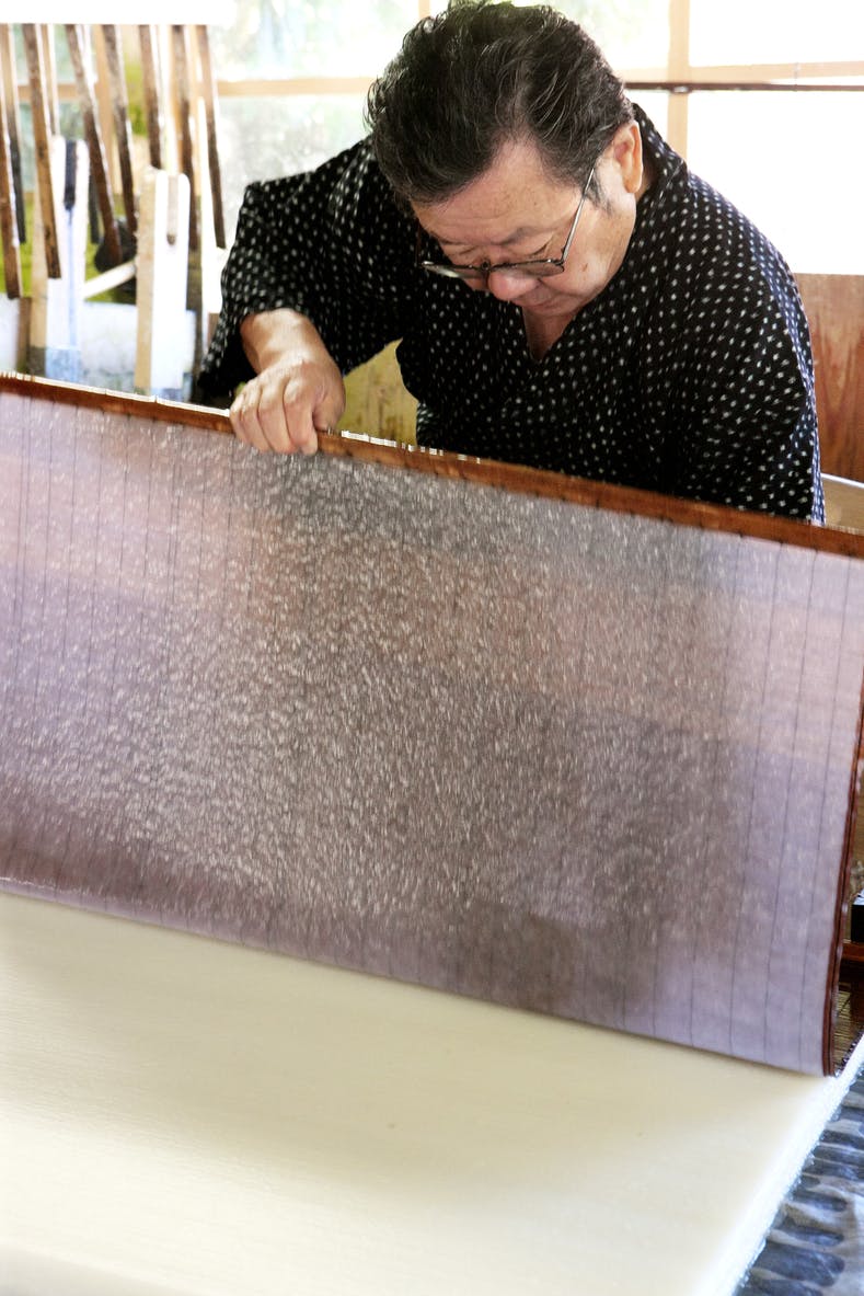 そして、同じく出雲民藝紙の伝承者、紙漉き職人 安部紀正さんにも今回のプロジェクトに、多方面で力を貸してくださっています。紙漉きに関する質問に答えてくださったり、気遣いの言葉や善きアドバイスを頂いています。