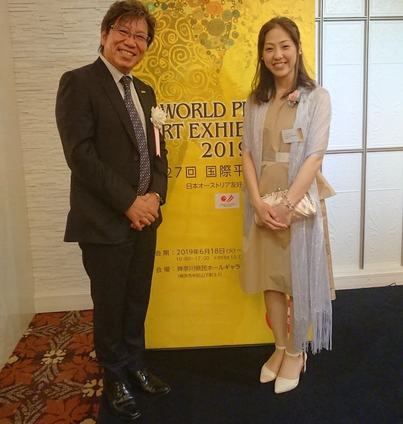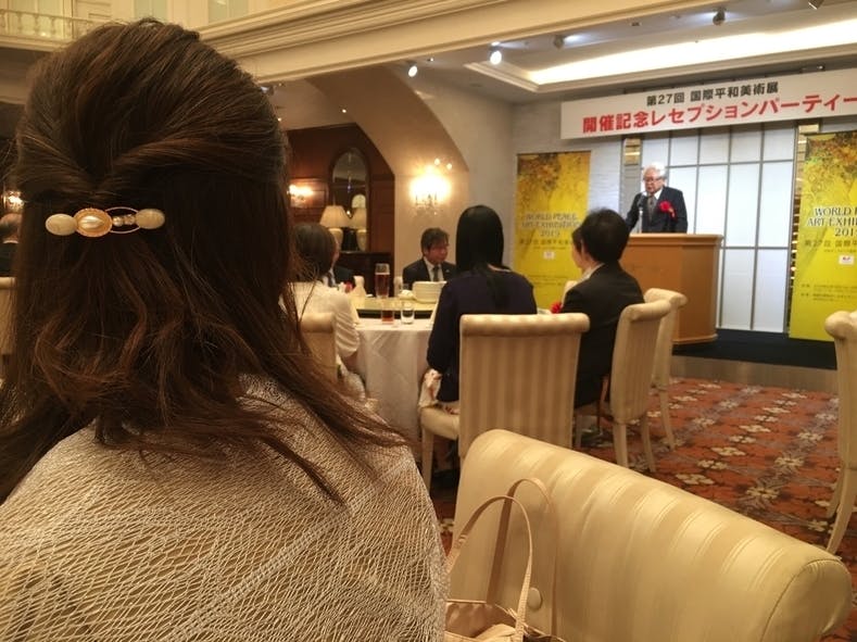 18日の夕方から、開催されたレセプションパーティーでは、作品展を企画されているクオリアートの代表取締役社長 櫛田英寿さんのお話がありました。会社設立当初から27回を数えるこの作品展は、思い入れの強い作品展であること。言語を越えて世界共通言語のアートを通して平和のメッセージを伝えられることの意義などのお話がありました。そして日本とオーストリア外交樹立150周年の節目の時に、世界遺産のシェーンブルン宮殿で展示会ができることの素晴らしさを聞き、ウィーンに行くという思いを強くしました。