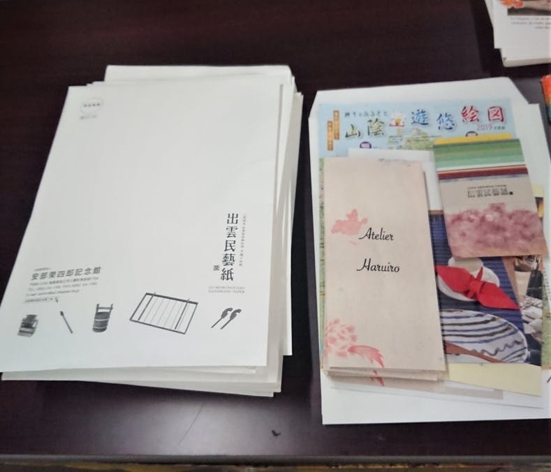 展示会場の受付には、資料を置かせて頂き、島根や松江、出雲民藝紙をアピールしてきました。