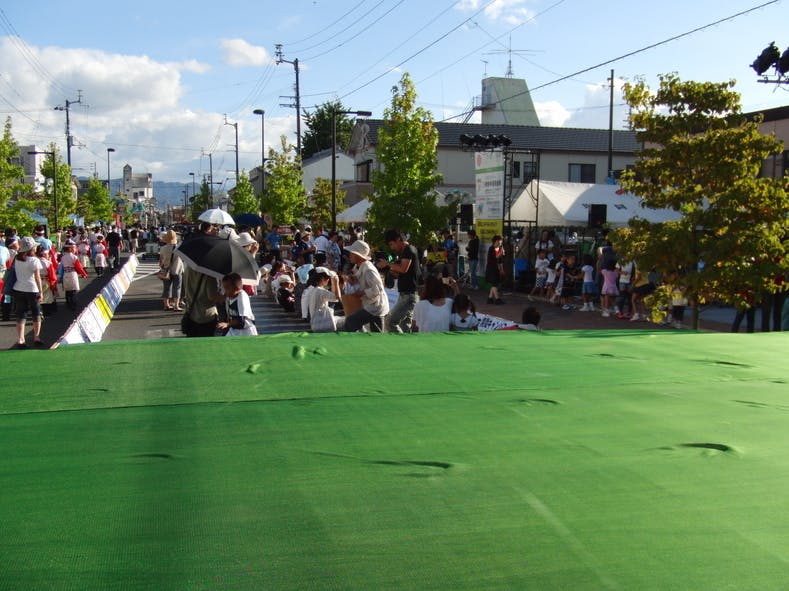 ↑第1回目の開催。ストリート棒高跳びショーのマットの上から会場を見た風景。昔ここは商店街のアーケード通りだった。