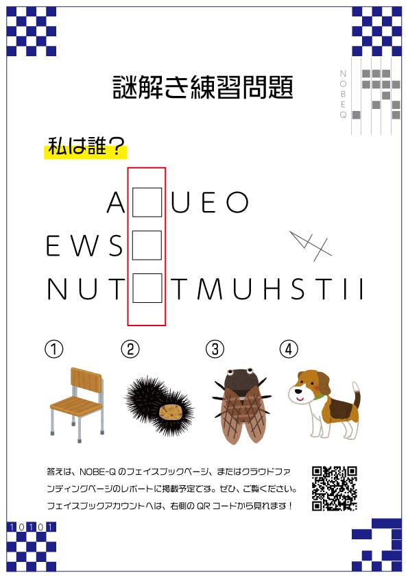 私たちの団体紹介も軽くいれていますが、このチラシの裏面には、謎解きの練習問題もついています!