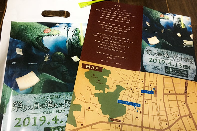 実際、わたしたちは「NOBE-Q」を立ち上げる前に、とある市民団体の活動として、『のべおか謎解きまちあるき −祭りの日に消えた民族学者−』というイベントを開催しました。