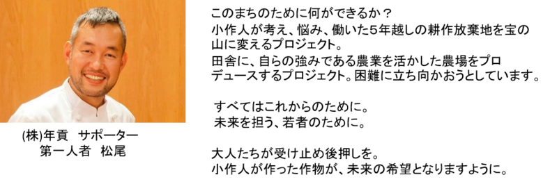 そのためにまず、「野菜販売」を主軸とする会社を支援者・仲間と立ち上げ、活動や内容、「農」の面白さや奥深さを少しでも多くの方に知っていただきたいと考えております。