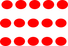 今、赤いボールが横一列に5個並んでいます。これを規則的に3回繰り返してみますと、例えば