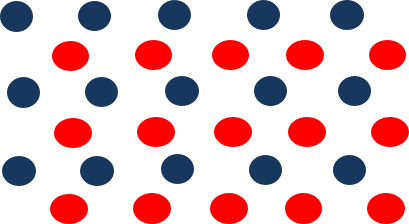 こうなります。青いボールも赤いボールも秩序よく並んでいます。ですからこうすると