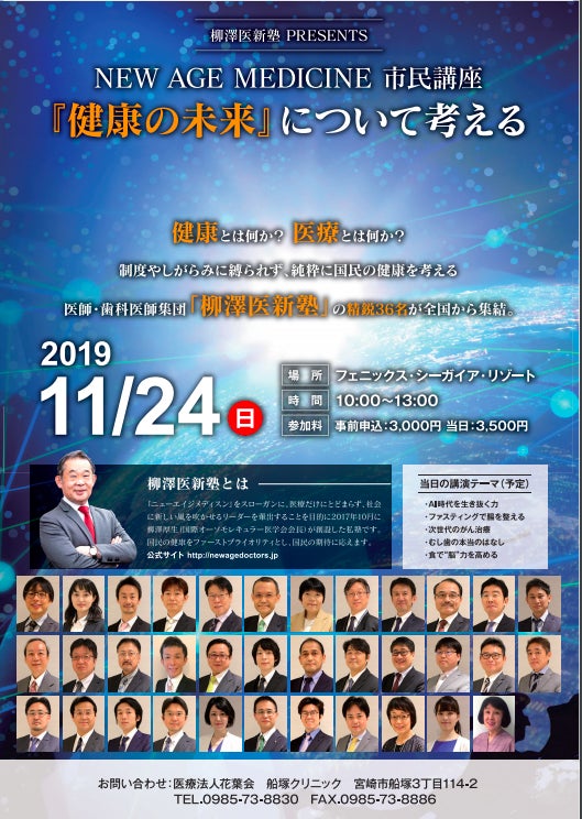 主催の柳澤医新塾は日本各地の医師、歯科医師が集う集団です。その共通した想いは、『国民の健康、国民の幸せのために』というものです。『医療とは何なのか』と再度見つめ直し、また、自らの使命を問い直したときに、純粋に『これからの医療』を考え直し、国民のみなさんとともに健康や幸せについて改めて問い直す時代に突入していると感じています。