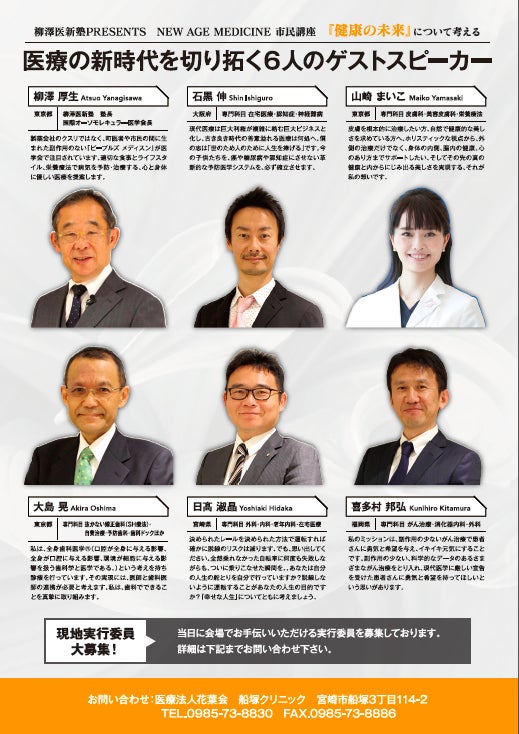 『New Age Medicine』を合い言葉に各地で実践している有志がいます。これまで世界中から講師をよび世界の予防医療、また、先進医療について学んできました。仲間同士での勉強会の過程をおえ、いよいよ国民のみなさんにわれわれの想いをぶつけるときがやってきました。