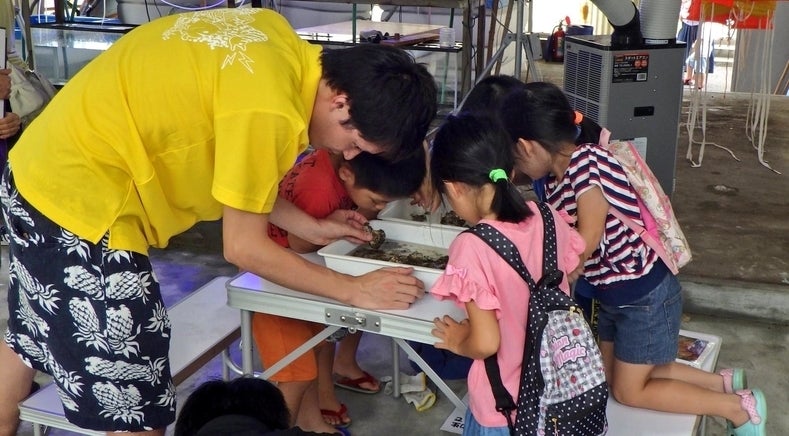 昨年の8月に宮崎大学が開催しているミニ水族館に出張SEEDとして参加させていただきました。プレゼンテーションを通した伝え方も重要ですが、実際に見て触れることが、興味を持ってもらうために一番近道であることを感じ、このイベントを企画することに至りました。