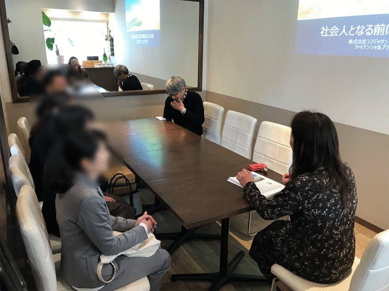 2018年3月は、津山市のレストランで講師の先生お2人をお招きし、卒園生を祝う会とセミナーを開催しました。卒園生が社会に出てから役立ててもらえるよう、「社会人になる前に知っておきたいこと」をテーマに講師の先生をお招きし、講座を行っていただきました。
