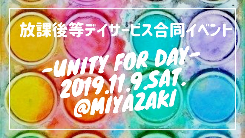 宮崎市内の放課後等デイサービス事業所が一堂に集合し、合同イベント「UNITY FOR DAY」を2019年11月9日(土曜日)に開催。仲間づくりを行い、結束を深め、将来の障害福祉サービスの発展を願っていく。