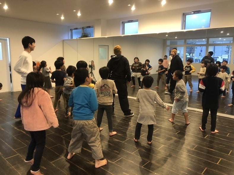 (さくらんぼリズムの時間は、ピアノのリズムに合わせて、自然と体を動かしていき、一体感を作っていきます。ダンスの時間は、宮崎県内外で活躍する、ダンサーTAIJIによるレクチャー。体を使って気持ちを表現していく楽しさを伝えていきます。)