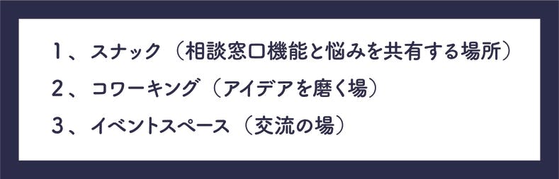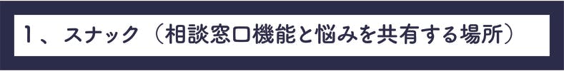 なのでまずは気軽に相談が出来るスナック的な場所が必要なんです。