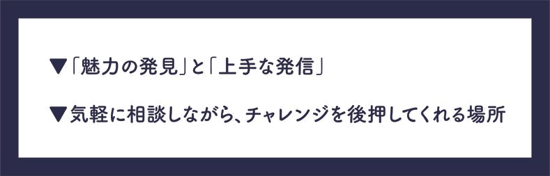 その「発見」を一緒に磨いて、「発信」までお手伝いするのが私たちの役割です。