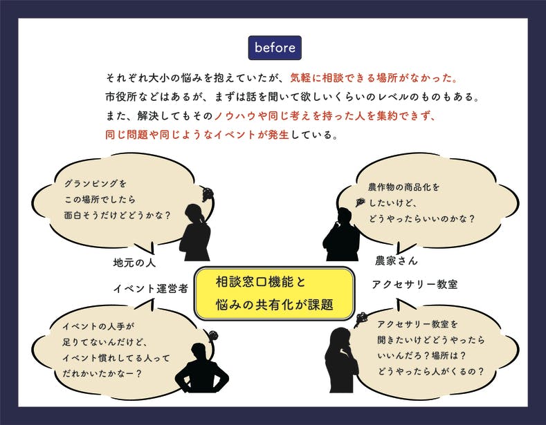 相談窓口機能と悩みを共有する場所というのが、今回の大事なポイントになります!