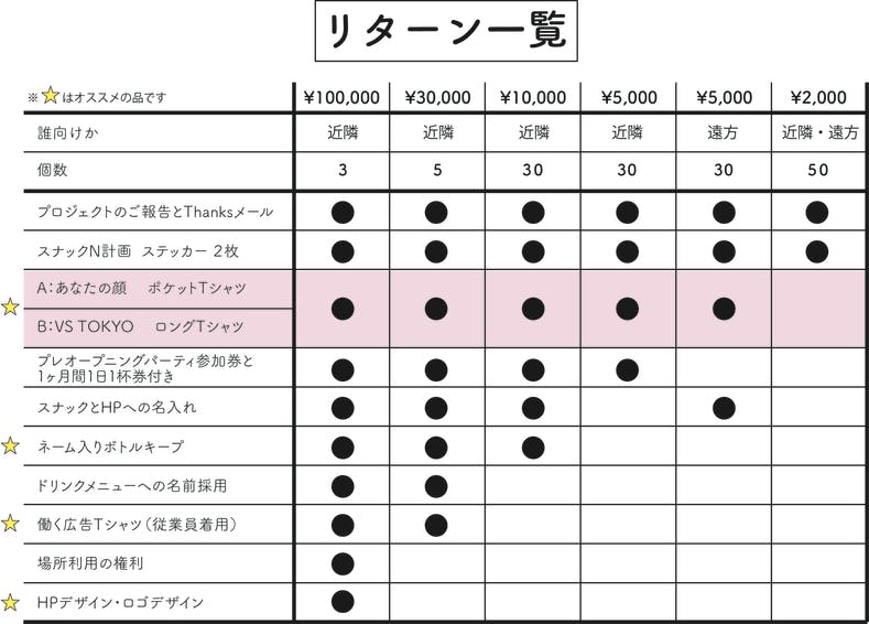 企業の方におすすめなのは30,000円のリターンから付いてくる「働く広告Tシャツ」と100,000円のリターンの「HPデザイン・ロゴデザイン」です!