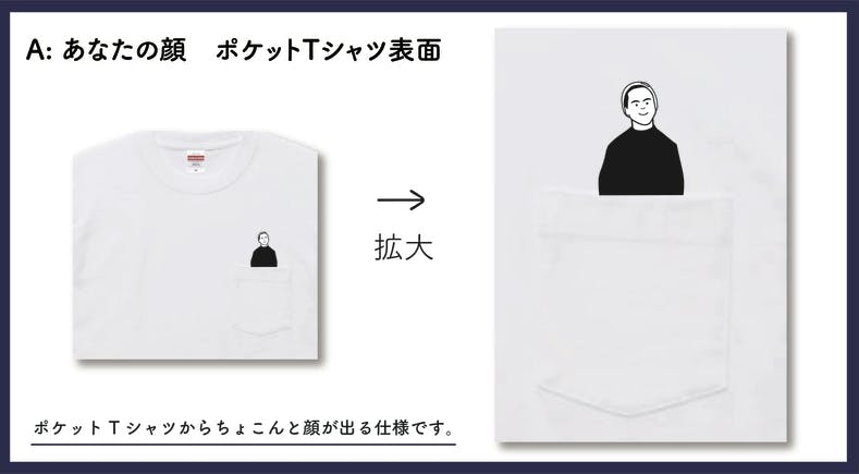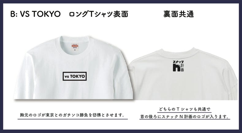 今回の目玉はなんと言っても「自分の顔がデザインされたTシャツ」と「vsTOKYO Tシャツ」を選択できることです!5,000円のリターンから付いてきます。サイズなどはレポートに記載いたします。