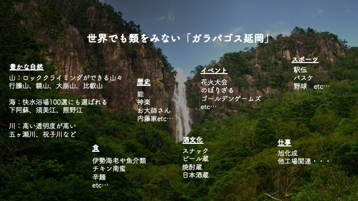 この「良いものはあるが、伝わりきれていない状態」を解決し、みんなが「延岡ってイケてるよね!」という活力溢れる状態に持っていきたいと考えています。