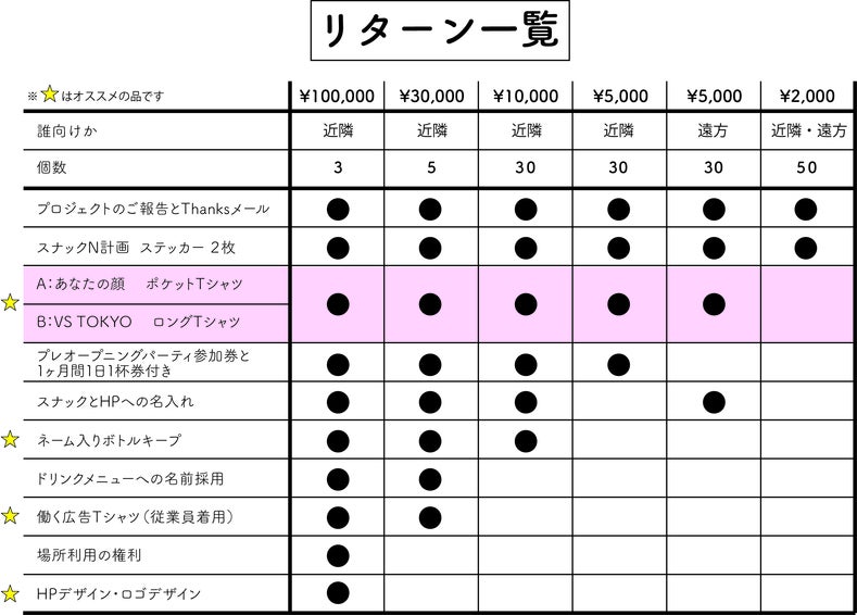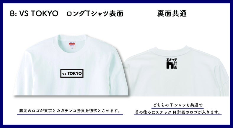 今回の目玉はなんと言っても「自分の顔がデザインされたTシャツ」「vsTOKYO Tシャツ」を選択できることです!5,000円のリターンから付いてきます。サイズなどはレポートに記載いたします。