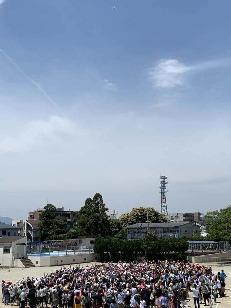 ▲2019年5月26日 宮崎市立小戸小学校(写真上部にドローン)