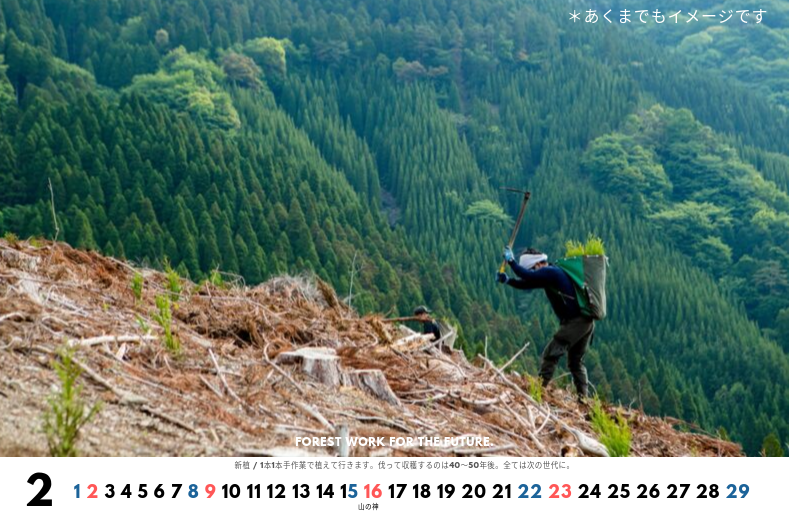 そしていつかこのカレンダーを通して、現場で働く山師が実際に増える事を切に願っています。