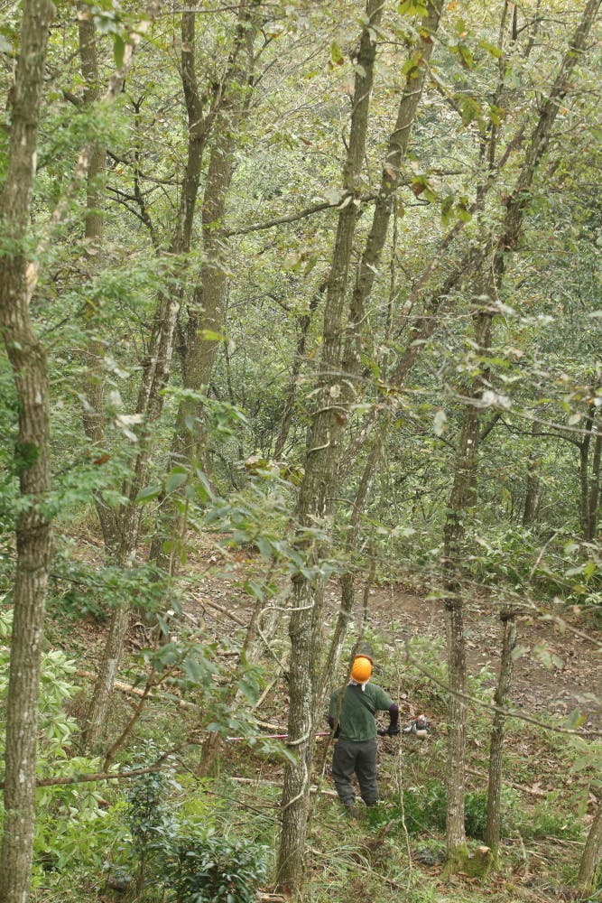 木の下に茂る小さな木や草を刈る作業です。