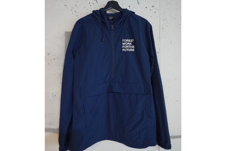 ③「FOREST WORKS FOR THE FUTURE」のロゴが入った、特製アノラックパーカーをお送りします。林業推し・山師推しの方にはたまらないメッセージプリント。山でも街でも最高に使えて格好良い!こんなの欲しかった!山師イマニシお勧めです!サイズは詳細記入欄にご記入ください。