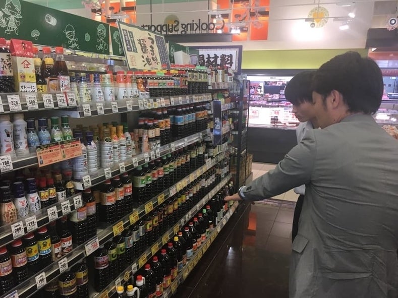 ・地元スーパー回りに同行しました。醤油・味噌のコーナーはもちろん、たれ・ドレッシング、さらにお惣菜コーナーのチェック