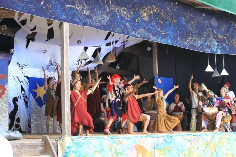 ↓「美咲芸術世界2017」のオープニングイベントで好評を博した創作演劇「アマンジャクの夢」の公演。