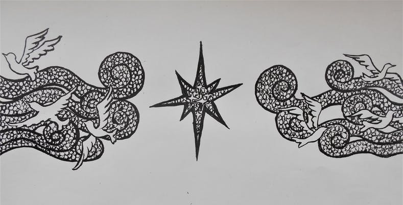 ↓光り輝くお星さまのイメージデッサン。(スカット☆リンダ作)