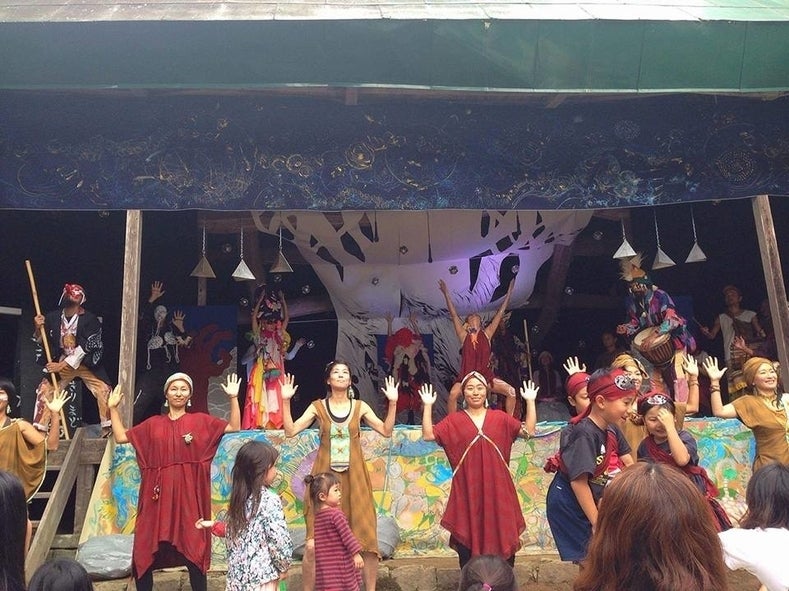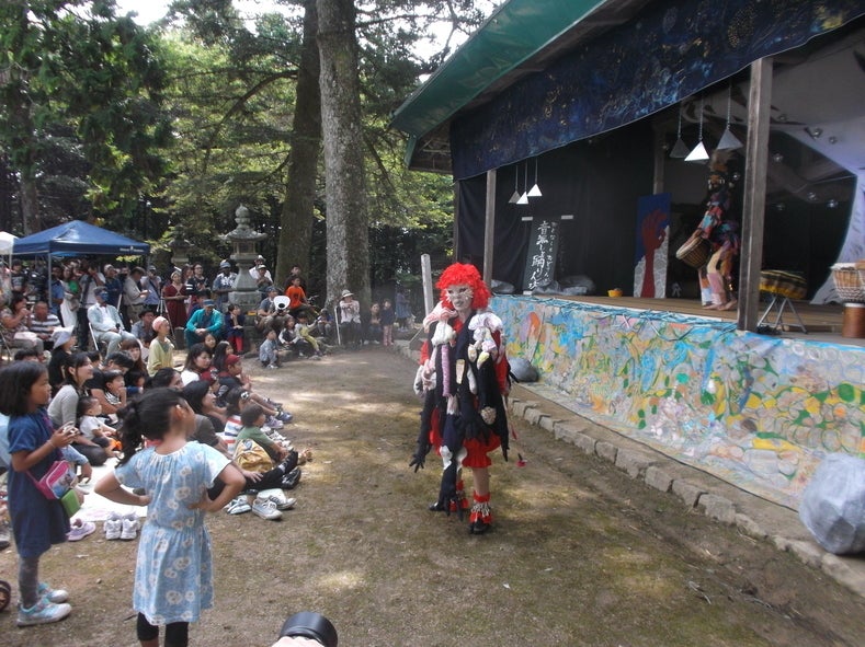 早いものでパリからここ美咲町の隠れた秘境・大垪和(おおはが)に移住し、丸9年になります。移住の大きなきっかけになった、この地の持つ特有の神秘的な雰囲気があふるる二上山のてっぺんから生まれた「アマンジャク伝説」。隕石のような謎の大岩たち、全ての真理を知るかのように佇む両山寺の千年杉、西日本一の奇祭「護法祭」・・。何このパワースポット!?そして「アマンジャク」が伝える人間の業、深いメッセージ・・。 すっかり魅了され、もっと知ってもらいたい!!と言う想いから、舞台演劇、装飾、パフォーマンス等々によって「アマンジャク伝説」を表現し続けています。 2020年秋から開催予定の美咲芸術世界では、より愛と情熱をこめて、絵本製作と演劇公演を地域の子供たちと共に実施したいと思っています。