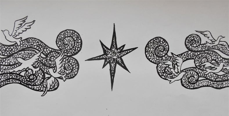 ↓「アマンジャクの星とり」をテーマに描いた作品。舞台公演「アマンジャクの夢」の舞台美術の一部となった作品。(楽画鬼作)