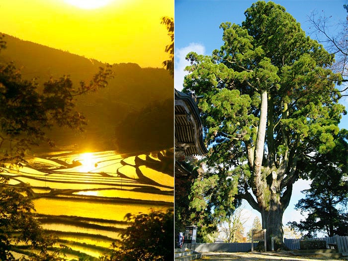 ↓大垪和西棚田の風景(愛甲たけし撮影) ↓二上山両山寺の千年杉(愛甲たけし撮影)