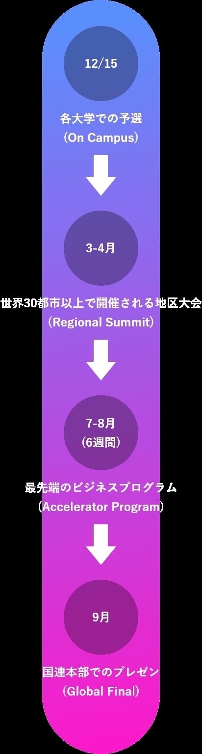 各大学で優勝したチームは世界の30以上の都市で開かれる地区大会(Regional Summit)に参加することができます。