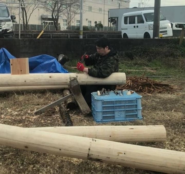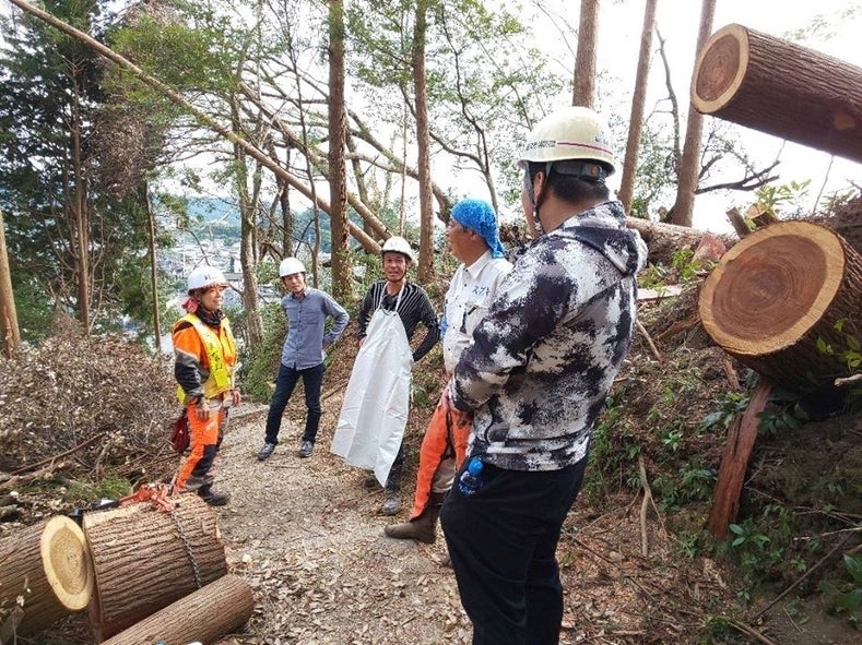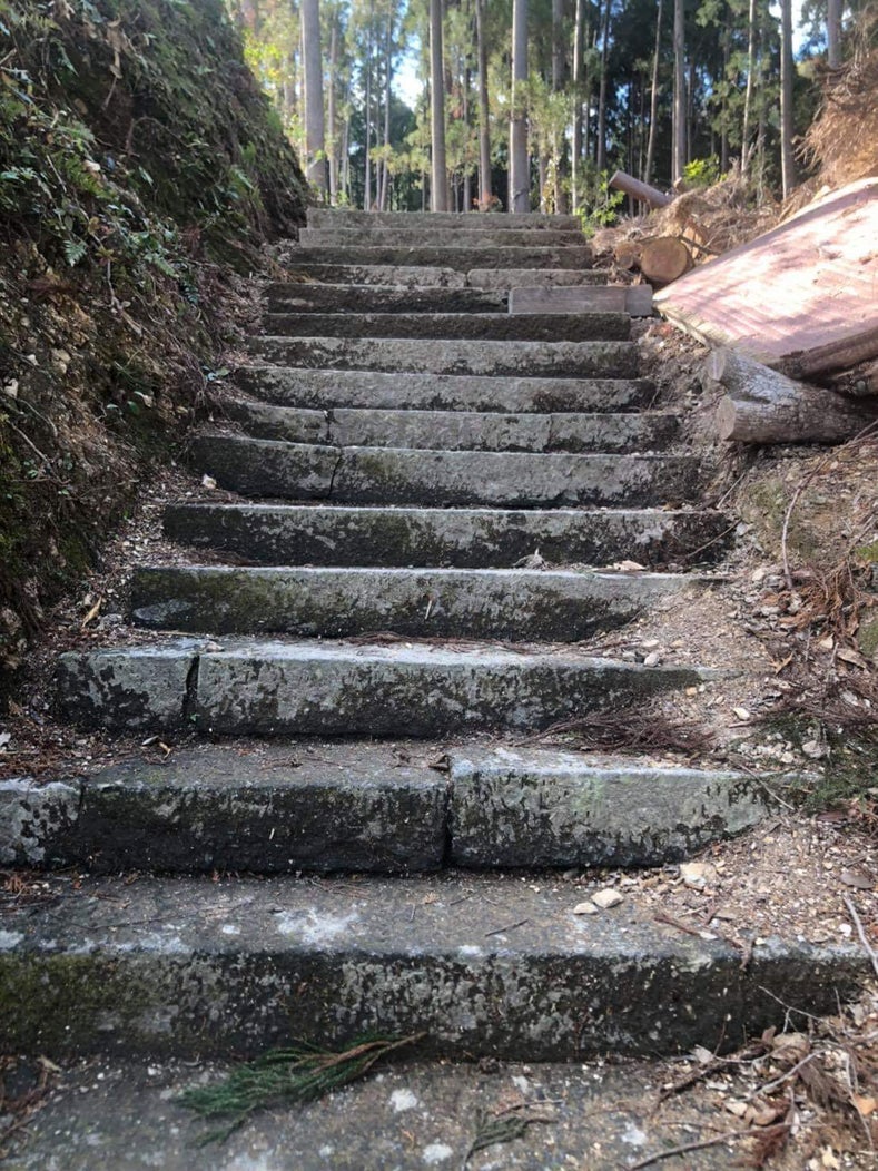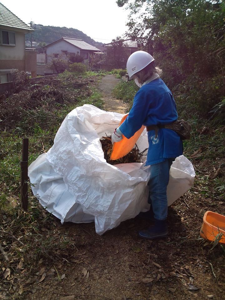 今日、2月2日までになんと100名もの方からご支援が届きました。こんなにたくさんの方々にご支援いただき、本当に嬉しいです。ありがとうございます。***ボランティアの皆さんの活動の記録を続けます。10月20日も南阿蘇や益城町から来られた方も含め6名で作業をしました。現場には、参道で作業する時に、階段を保護する畳が届いていました。延岡の畳屋さんが寄付してくれました。チェーンソーで大木のカット、重機で大木を参道から除く作業、参道脇の木々を運んで片付ける作業とできることを皆でやりました。倒れ掛かって危険な大木が今日までに伐採されて、林に空間ができて、太陽の光が差し、風が抜けて、遠くが見渡せるようになりました。 10月22日も南阿蘇からおいでになり、参道脇の倒木をチェーンソーでカットしました。短い時間だけでもと3名参加し、鳥居周りに溜まった枯葉を掻き集めて。巨大な袋に入れる作業をしました。23日は一人でしたが、のんびりとできる作業を。その後はお天気が悪かったり、作業できる人がいなかったりでおやすみが続きました。 10月27日(日)南阿蘇と福岡、熊本からも参加して下さり、作業をしました。参道の奥の脇に溜められた伐採した木の枝葉を移動しました。リレー方式で、階段の上の木の枝葉を、下まで下ろし、地上に積み上げる作業をしました。あっという間に、枯れた木々が、山積みみなりました。最後の写真を撮っていなくて残念ですが、山積み第2弾という感じです。みんなが、チームワークで、頑張りました。そんな風に作業は続きました。