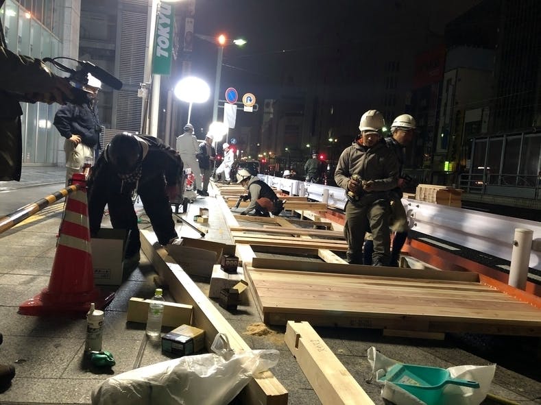 こんな都心で大工さんが作業するなんて、なかなか貴重な光景です!