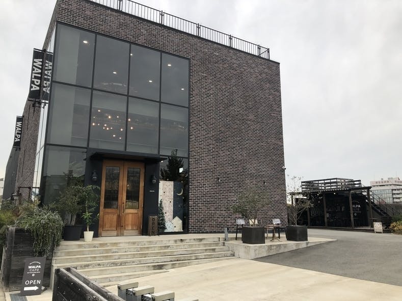 到着したのは大阪の臨海部にあるWALPA CAFEです。なんば駅からバスで30分の場所です。