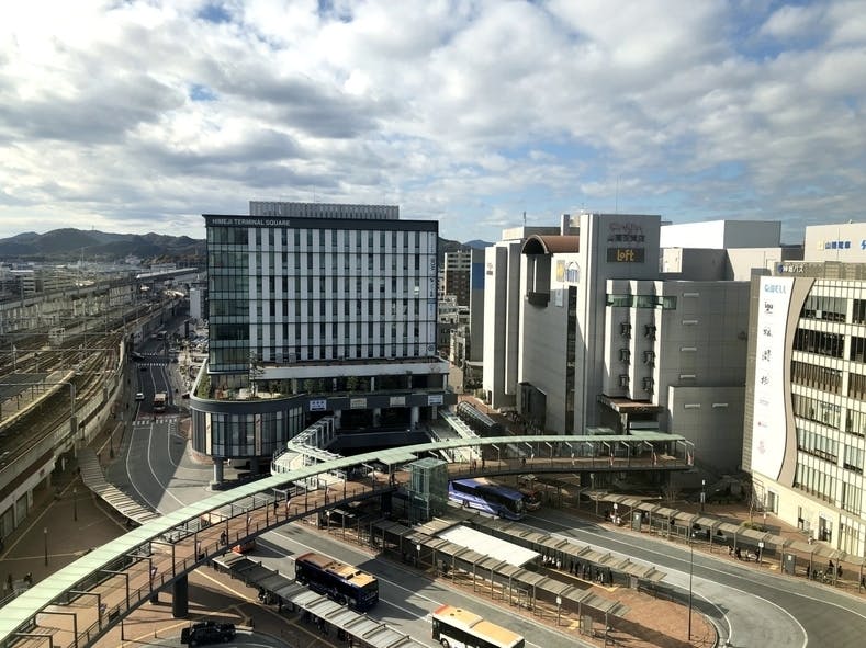 姫路駅前では日本で初めて本格的なトランジットモール化が実現。姫路駅前(北口)にはバスとタクシーだけが乗り入れることができるようになりました。
