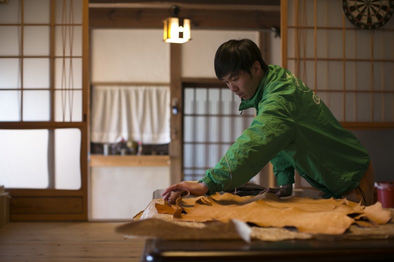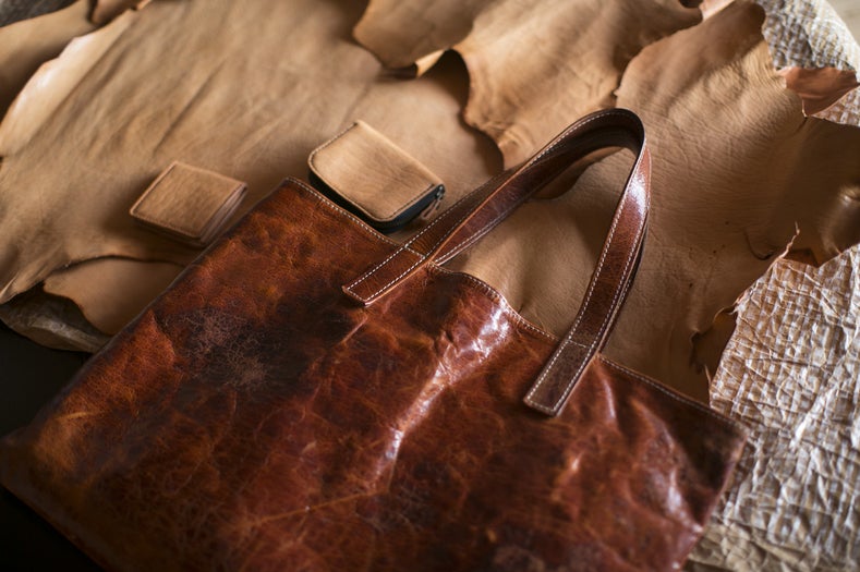 植物から抽出される"渋"を用いる「植物タンニンなめし」は、味わい深い発色や経年変化が特徴。棚田と同様に作業効率では劣りますが、使い込むことによる変化を楽しんでいただけます。