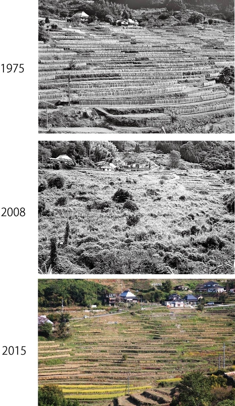こうして地元のお年寄りや仲間と共に、ほぼ人の力だけで棚田を再生させてきました。今のところ再生された田んぼは、約8300枚と言われる棚田の四分の一くらい。少しずつお米も取れるようになりました。そしてもちろん、四半世紀ぶりの景色も蘇り始めています。