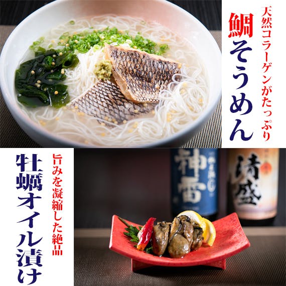 現在、鯛そうめん、牡蠣のオイル漬けなどを出品中です。