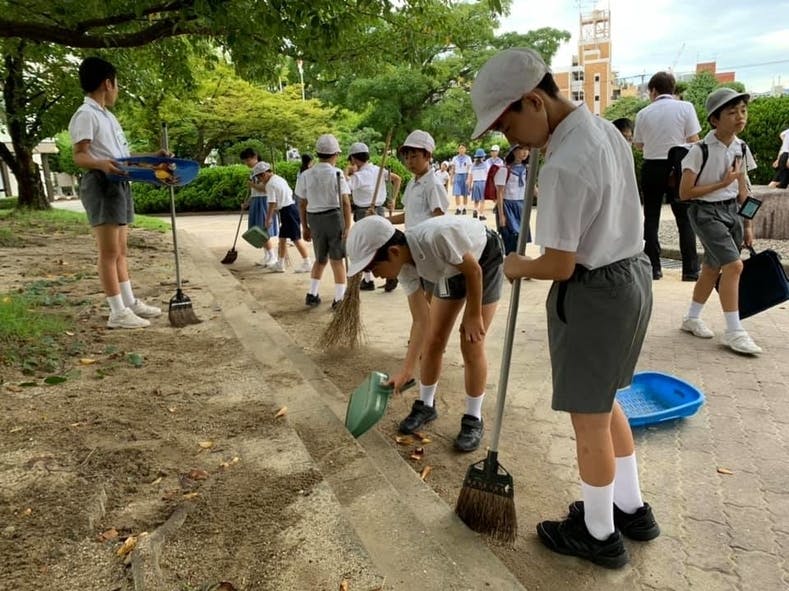 となりにある附属中学校の人や地域の人にも声をかけて,掃除を一緒にすることをしてみたいと考えました。そのときに使う掃除道具や呼びかけのためのチラシづくりをしたいと考えました。掃除が終わったあとには一緒に活動した人と一緒にお茶を飲んでお話したいです。