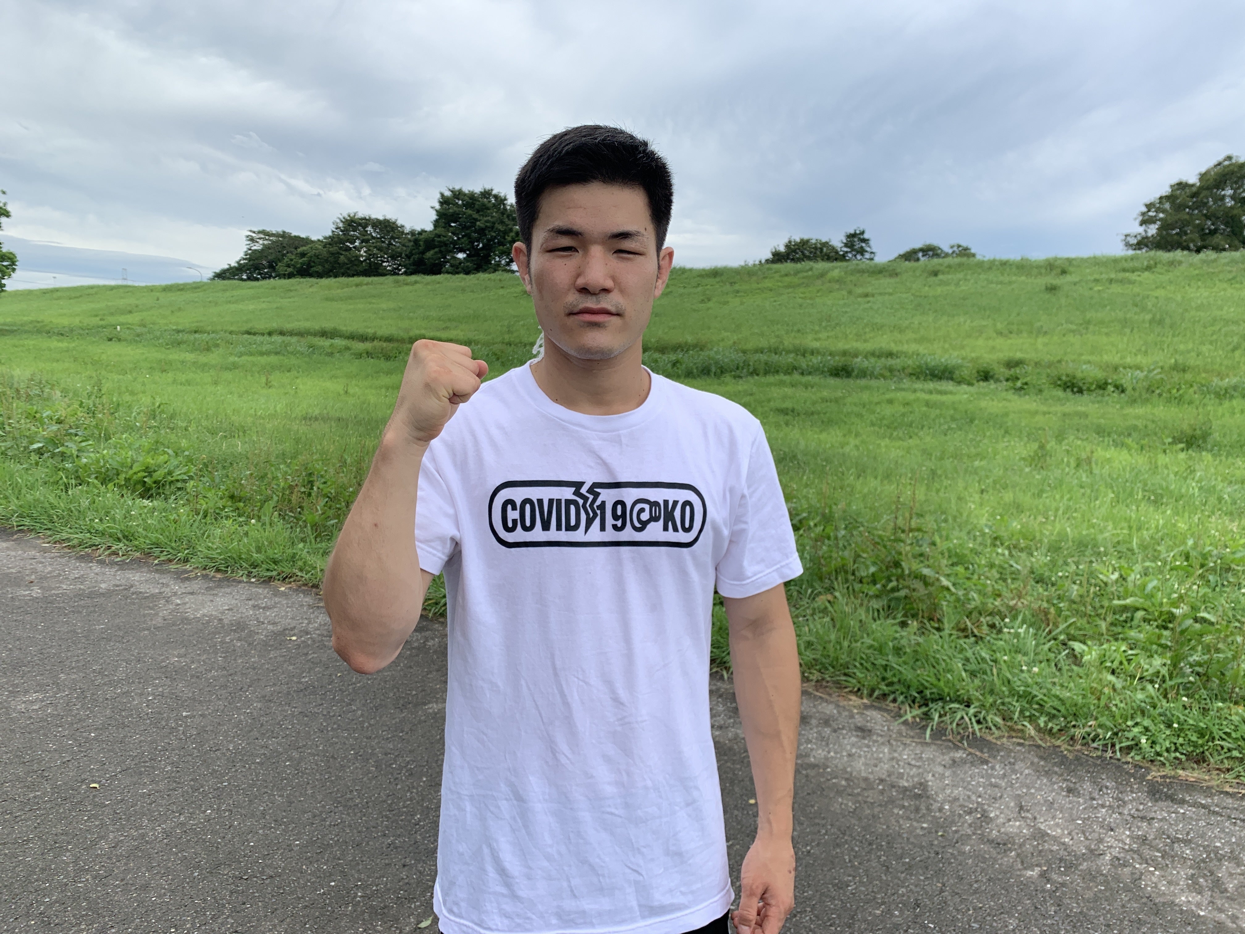 ④プロボクサー南出作成「コロナに負けるな」Tシャツ