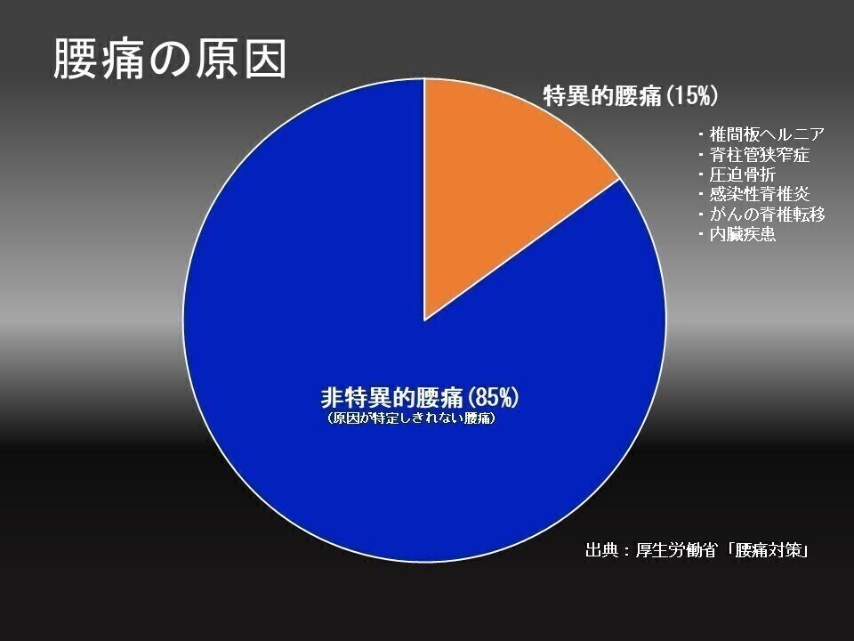 原因が特定されない非特異的腰痛、どんなに重い腰痛でも、必ず軽減又は消失します。