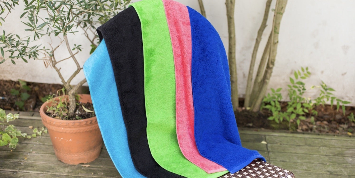 1)通常のフェイスタオルより15cm長い95cm サイズは34cm×95cm
