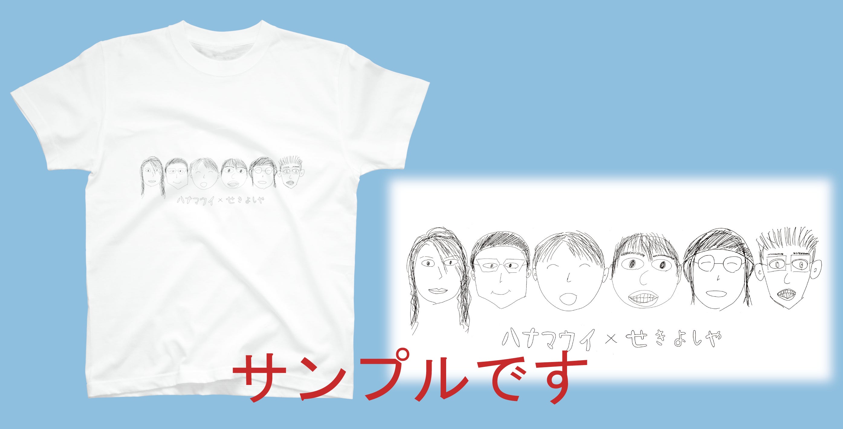 ★元【新選組リアン】 のリーダー、現在【イーワイエス】とソロ活動で活躍中の関義哉画伯によるミュージックスタジオハナマウイスタッフの似顔絵オリジナルTシャツ