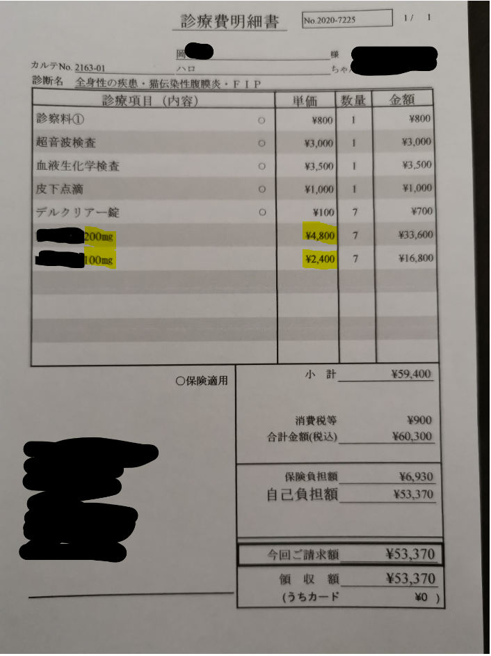 検査結果は数日かかるとのことでしたが、ハロの症状からやはりFIPである可能性は極めて高く、さらには腹水があったことから混合タイプ(中期)であるとの診断でした。