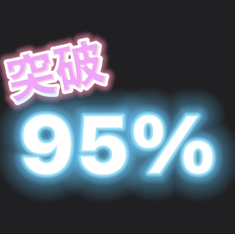 95%突破!!皆様いつもいつも、ほんつっっづっっっとに、見守ってくださり、ありがとうございます。涙ちょちょ切れです!!!!はっっっっっ!!!ネクストステージ考えないと!!考えてきまっせ!!!